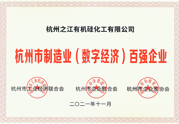 - 272021年11月 杭州市制造業(yè)(數(shù)字經(jīng)濟)百強企業(yè)(之江有機硅)282021年(2020年度浙江省建筑幕墻門窗綜合“十強企業(yè)”)證書