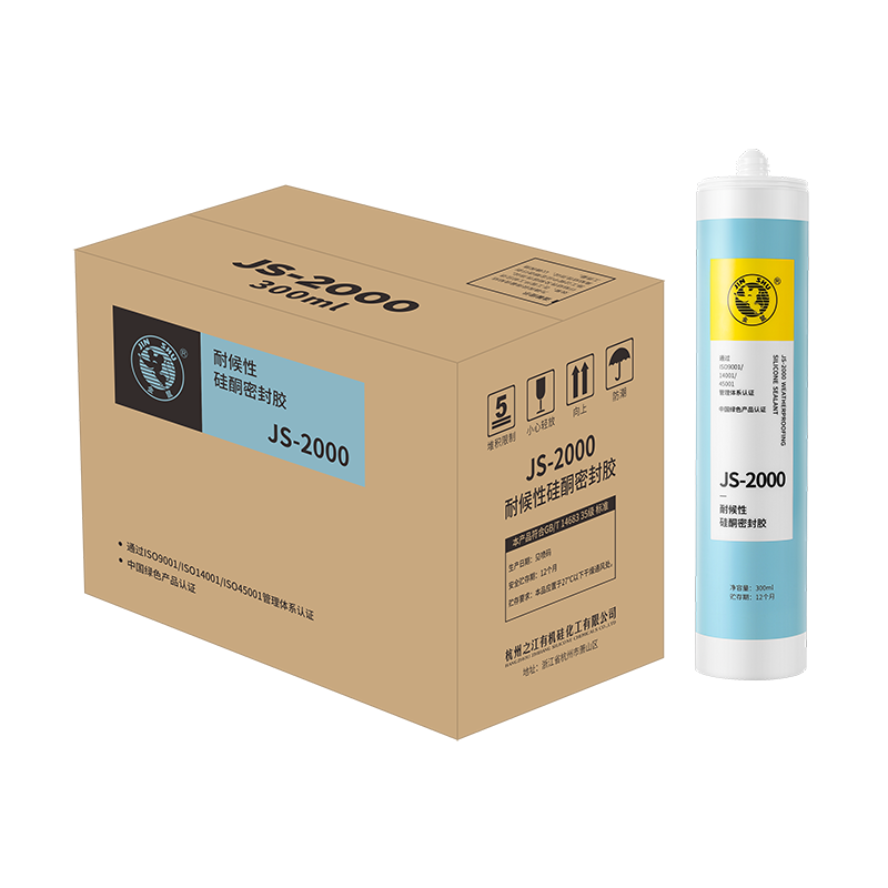 JS-2000 建筑用耐候硅酮密封膠是一種單組分、中性固化、專為建筑幕 墻中的耐候、防水密封而設計的。可在-5℃-40℃條件下輕易地擠出使 用,依靠空氣中的水分固化成優(yōu)異、耐用的彈性硅酮橡膠。